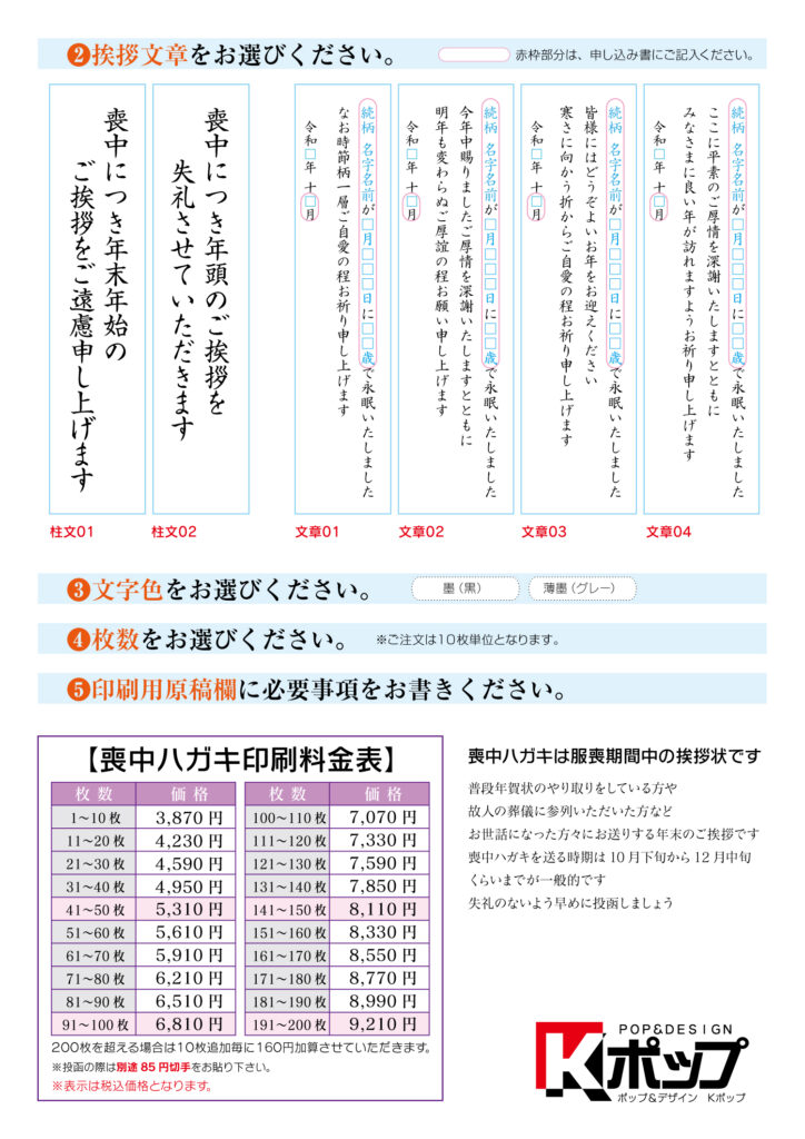 年賀状・喪中ハガキ印刷のお問い合わせ|デザイン・印刷のご注文【Kポップ】